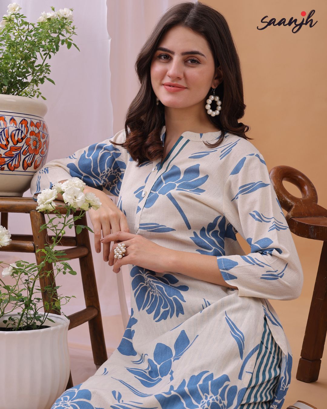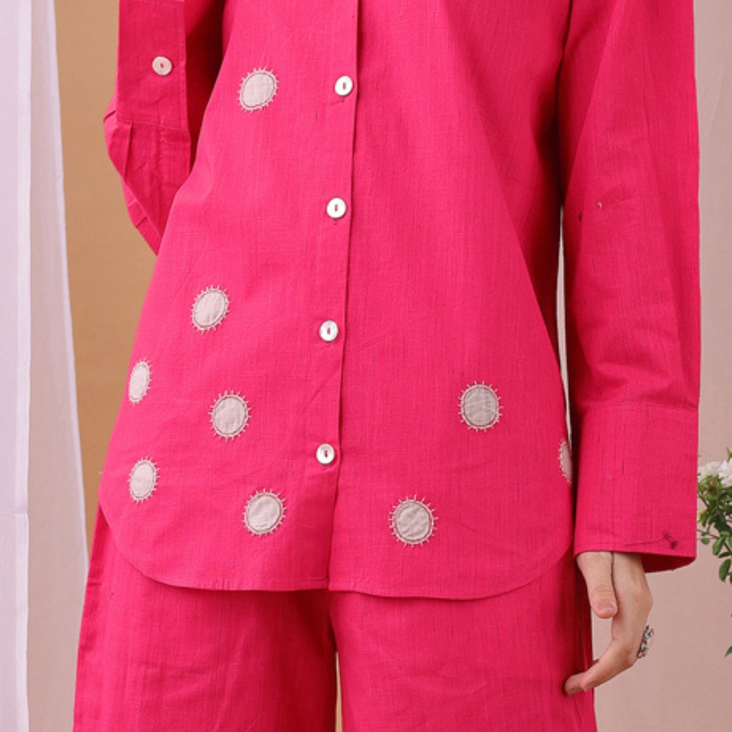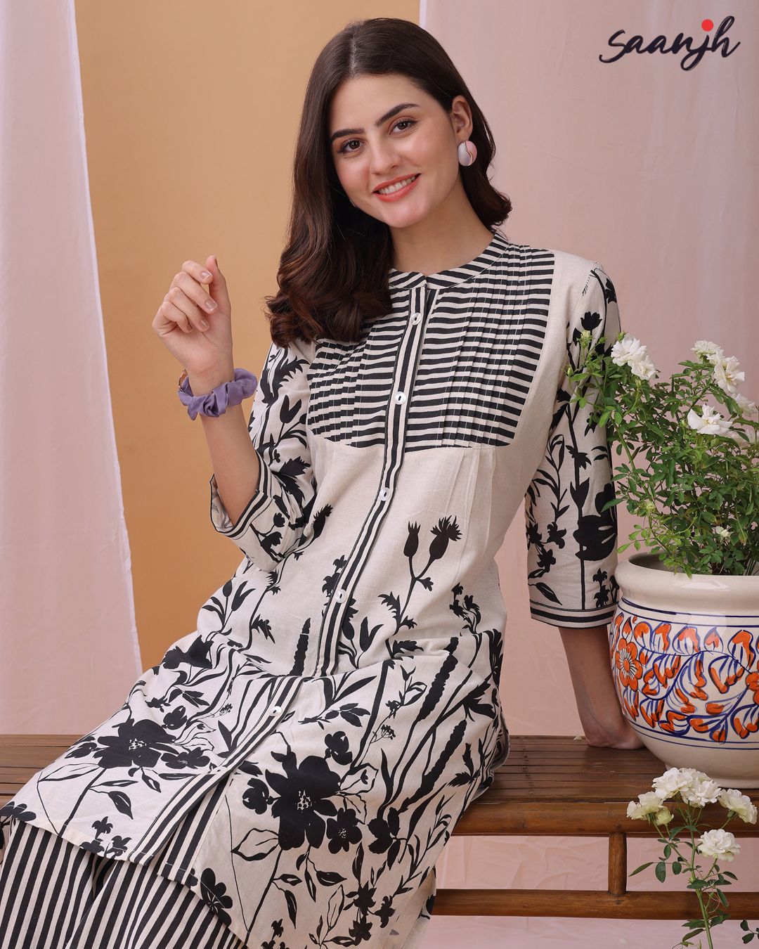 Elegant Pink kurta set crafted from pure mul cotton, featuring handwork block print on an A-line kurta with 3/4 sleeves and a V-line neckline. Comes with matching bottoms and a tassel-bordered dupatta for a graceful finish.