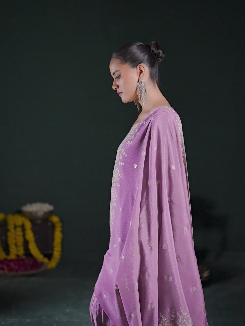 Women's Lavender Poly chiffon Embroidered Kurta set with dupatta